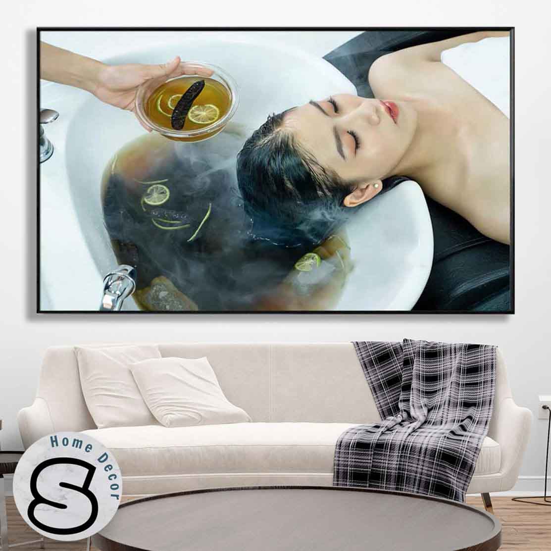 Bức Tranh Spa Gội Đầu diễn tả dịch vụ chăm sóc sức khoẻ gội đầu bằng thảo dược phổ biến ở các Spa làm đẹp. Với nguyên liệu là nước nóng, chanh tươi và bồ kết, phương pháp này giúp khách hàng có thể thư giãn, xua đi stress mệt mỏi trong cuộc sống thường ngày. Mẫu tranh Spa này phù hợp với tất cả các phong cách thiết kế Spa hiện nay.